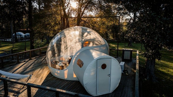 Unlike crowded campgrounds, the forest here feels personal. Towering pines and winding trails create an atmosphere that’s equal parts serene and invigorating. When you stay in a luxury bubble dome, you can watch the light filter through the trees in the morning and fall asleep under a sky so full of stars you forget the rest of the world exists.